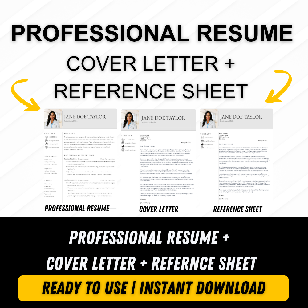 PROFESSIONAL RESUME + COVER LETTER + REFERENCE SHEET